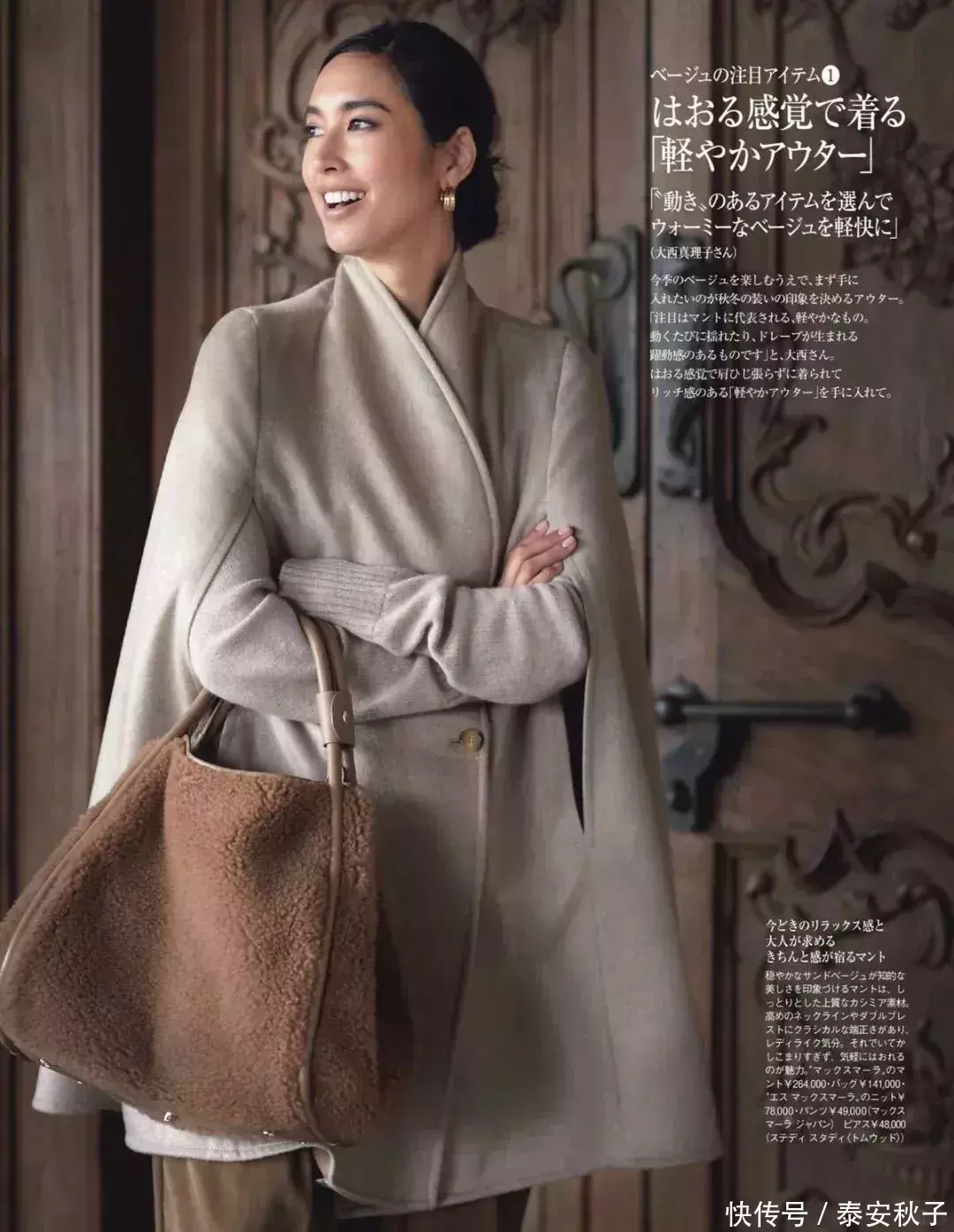 对于追求更高时尚度的朋友而言,米杏色的双面披肩款大衣,是特别适合过年穿的单品。